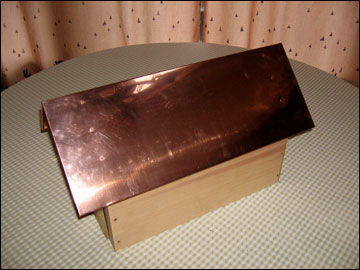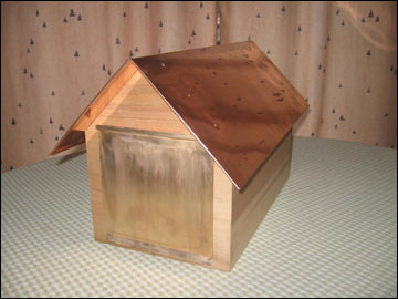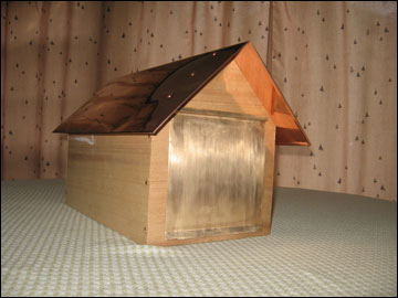 Mailbox doors can be difficult, since they will be operated daily for years, must be convienient for the mailman, and must be original in their own way. Mailboxes are relatively expensive because they usually take at least a full day, and often more than a half sheet of copper, currently at $100 per sheet. They will last indefinitly, and that is one of the things that is most important to me. This cedar mailbox has a copper roof, and these two materials are very long lasting. The copper roof will keep the wood dry, and everyone knows that a good roof will keep a building standing for a long time.